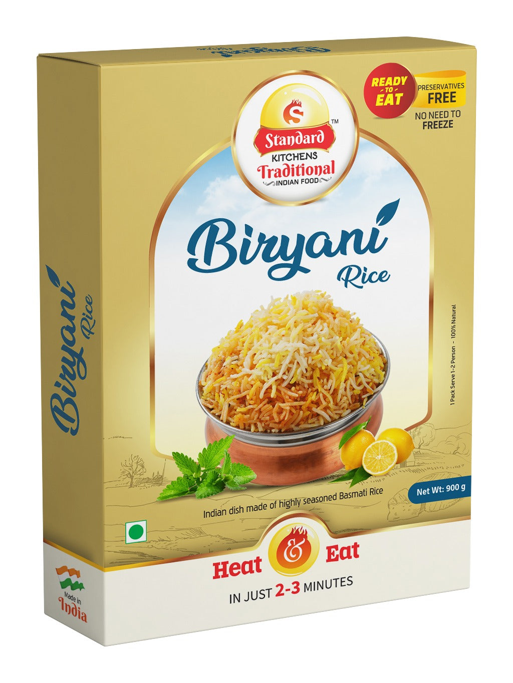 Standard Kitchens Traditional Biryani Rice – Ready to Eat Heat & Eat Meal | Authentic Indian Basmati Rice Dish | Preservative Free | 900g