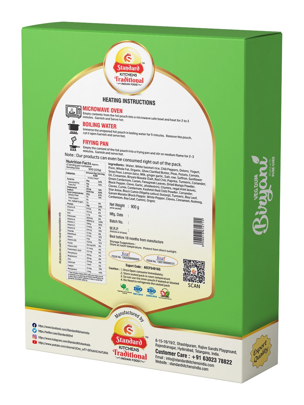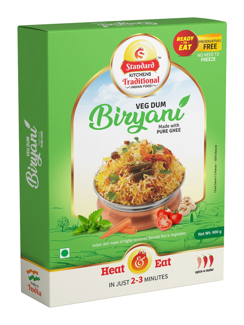 Standard Kitchens Traditional Veg Dum Biryani – Ready to Eat with Pure Ghee | Heat & Eat in 2-3 Minutes | 900g | Preservative Free & 100% Natural